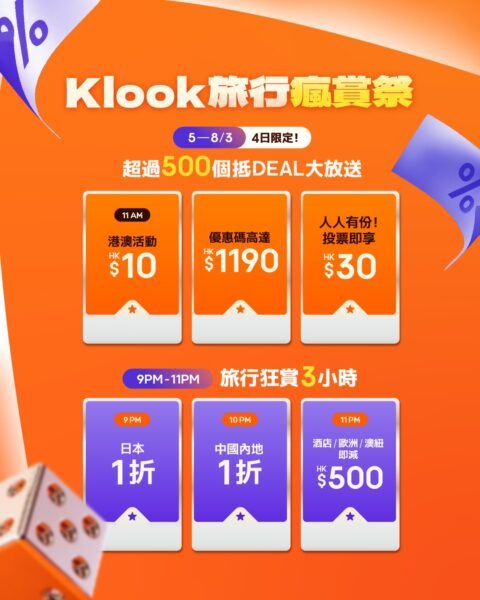 - Klook 3月5至8日旅行瘋賞祭