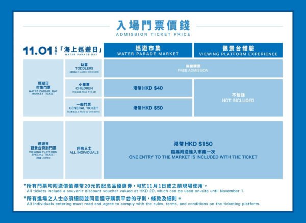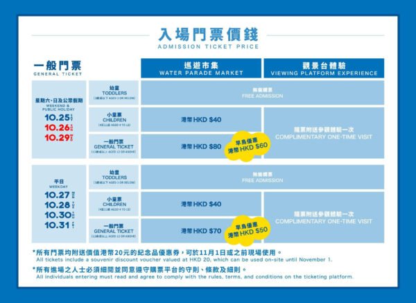 | 巡遊市集 | 10月25日至11月1日 | 中西區海濱長廊中環段 | 需購票入場 |