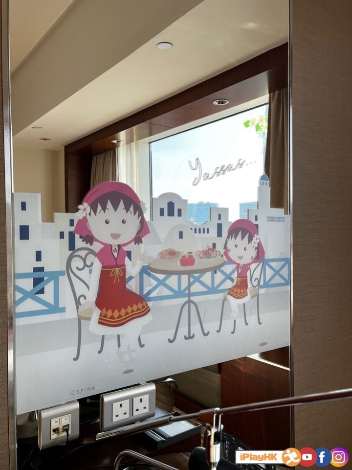 櫻桃小丸子主題房一共有4款以不同國家做主題,包括︰埃及、法國、澳洲及希臘,以小丸子跟家人和朋友去不同地方旅行的可愛圖像,所以房間佈置會有齊小丸子爸爸、媽媽、爺爺、小玉、花輪同學等等!房間的佈置有櫻桃小丸子造型的公仔、咕𠱸、掛畫、杯墊、鬧鐘等等,而且每樣產品都是Styacation限定,可以向酒店隔外購買呀!